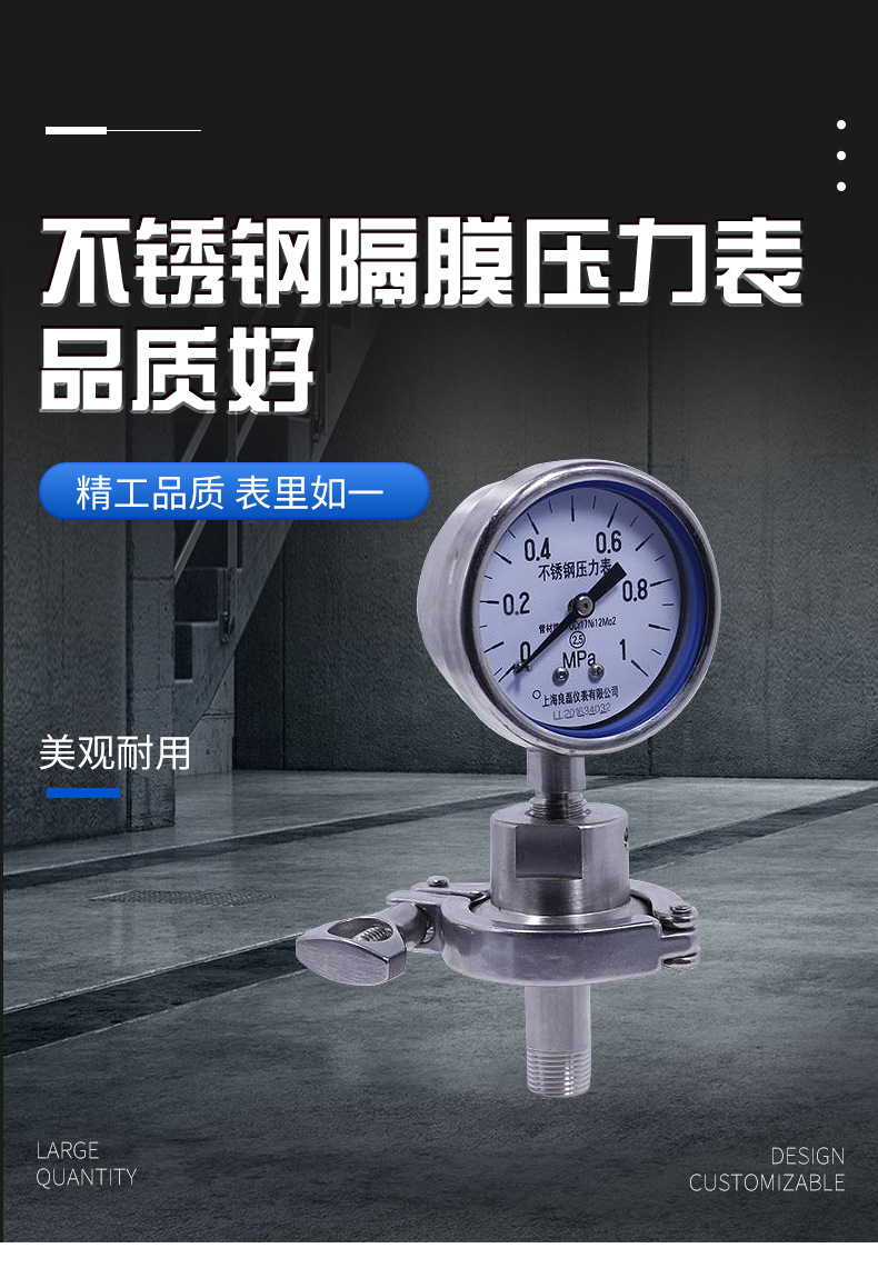 Stainless Steel Diaphragm Pressure Gauge Y60-BFZ-ML (0-1 MPa, Clamp Connection) for Food & Sanitary Applications