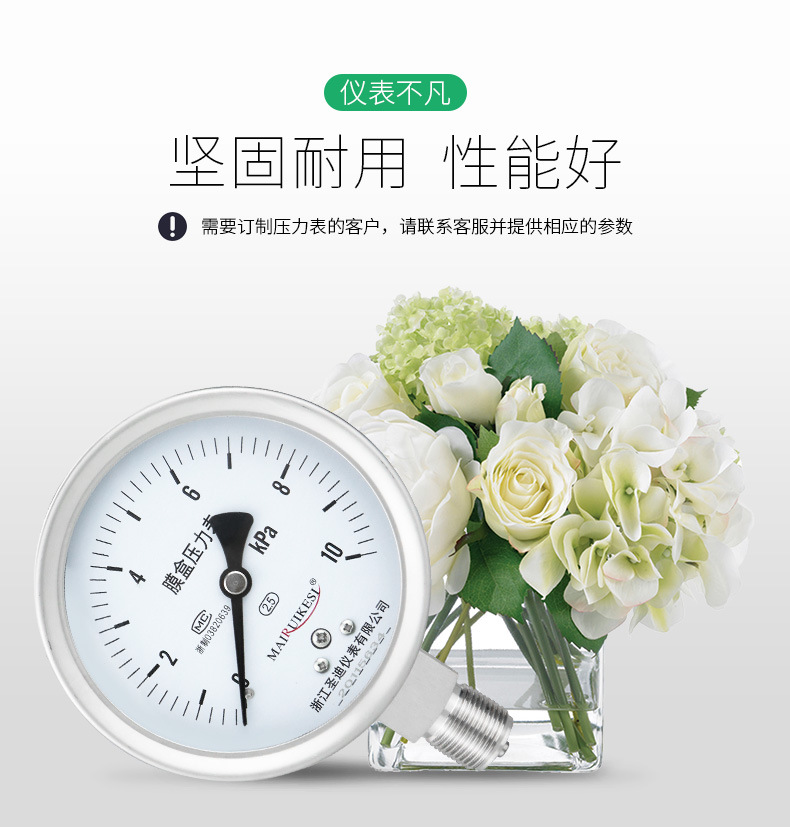 - Key Specs & Performance: Features a 100mm nominal diameter and 2.5 accuracy class, providing reliable pressure readings. The customizable range, including 0-10kPa shown, ensures accuracy for specific applications.