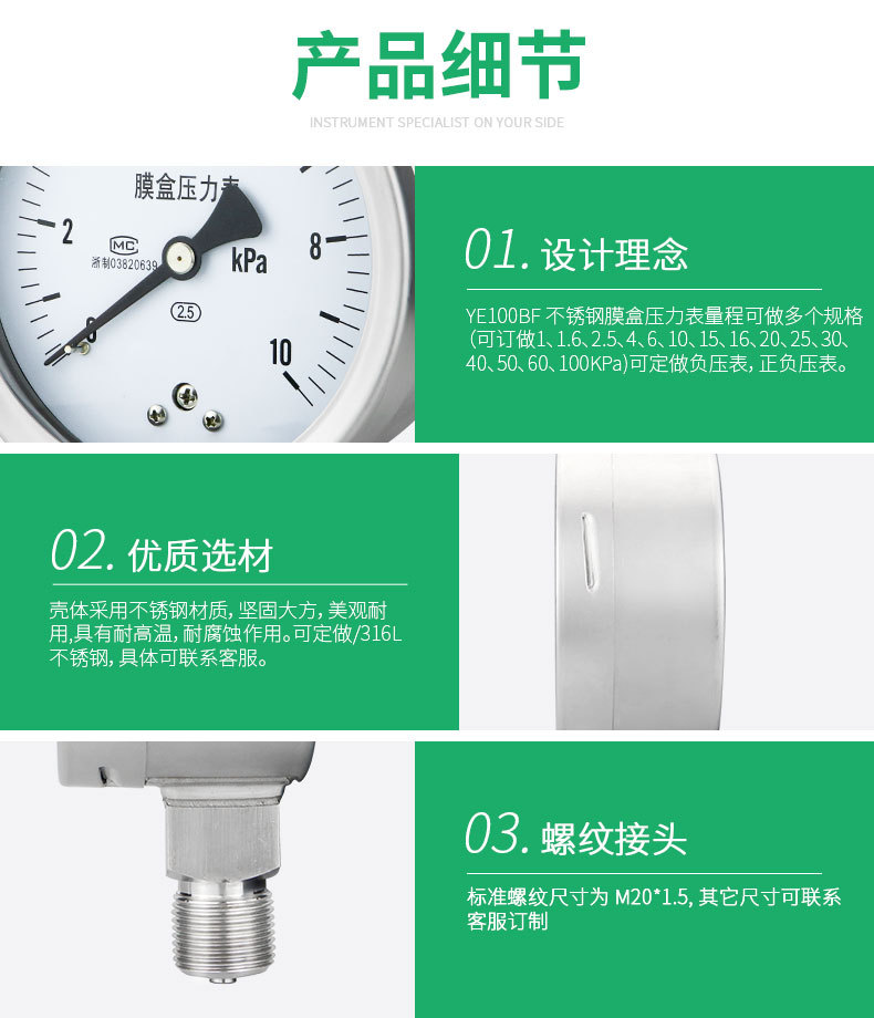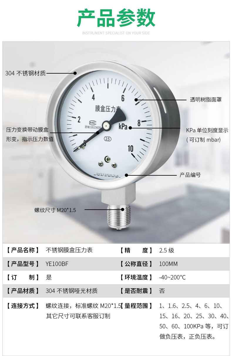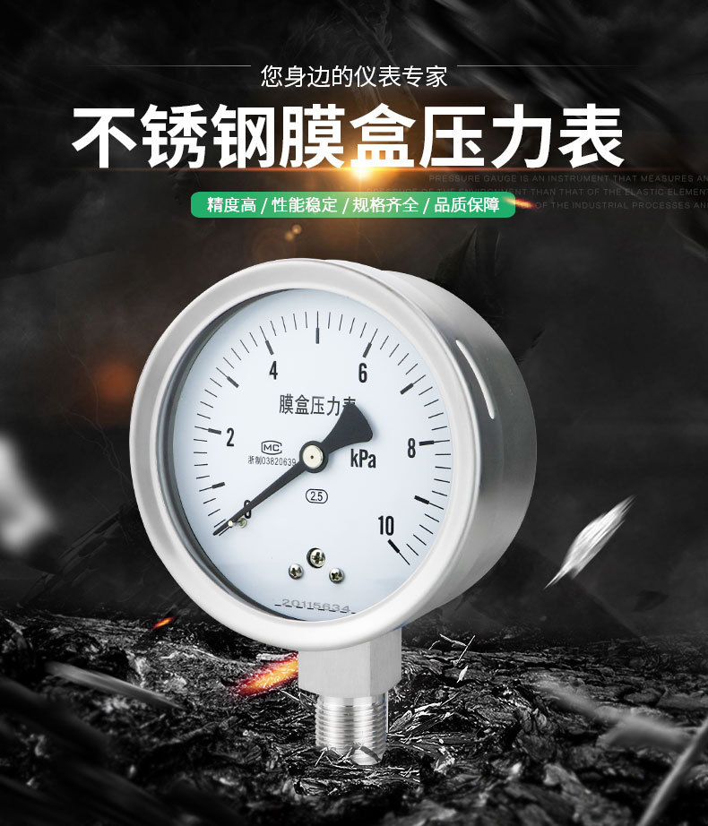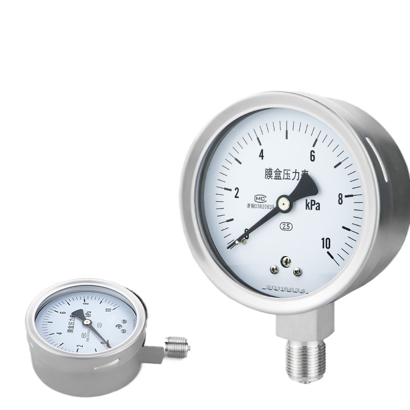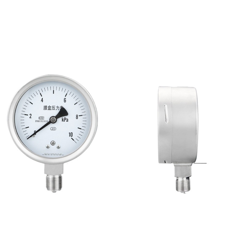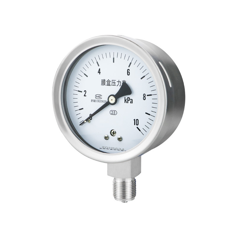 Stainless Steel Diaphragm Pressure Gauge YE100BF (0-40kPa, Sulfur-Resistant, High Temperature, Corrosion-Resistant) for Industrial HVAC Systems