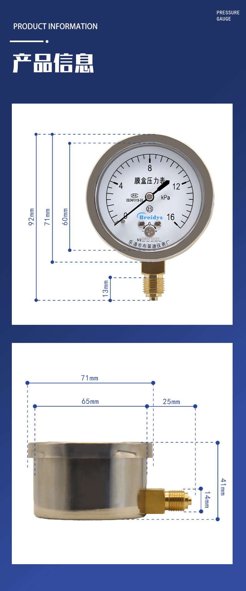 - What You Get: One Breidys YEB60 Diaphragm Pressure Gauge crafted for high-precision and customized measurement needs.