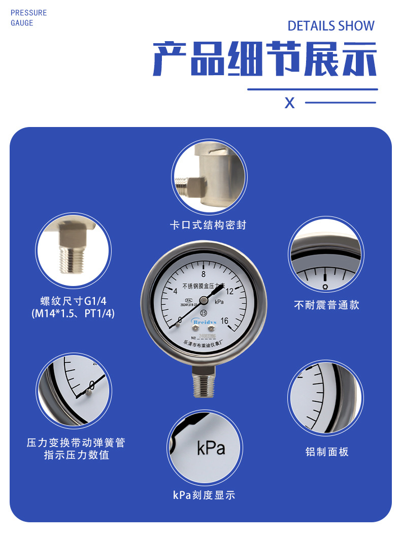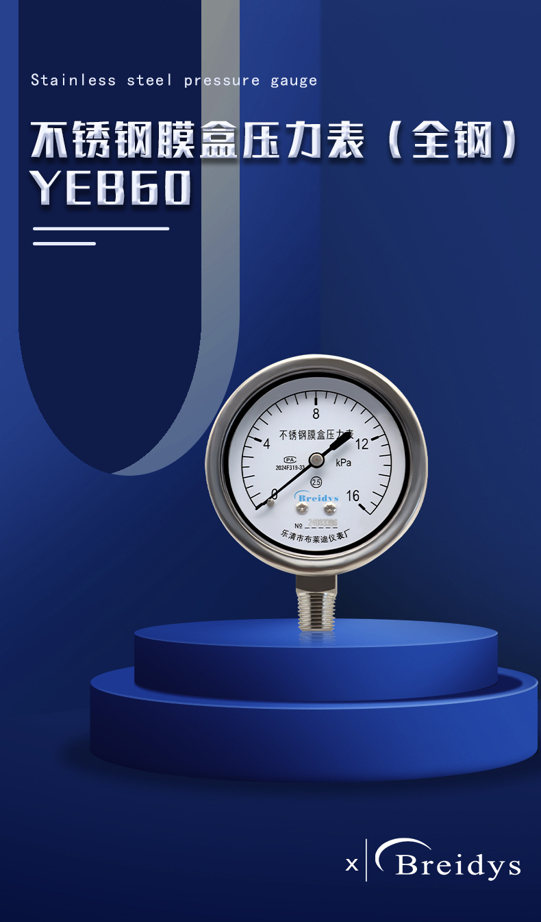 Stainless Steel Diaphragm Pressure Gauge YEB60 (All Steel) with High Precision KPa Range for Gas Boilers