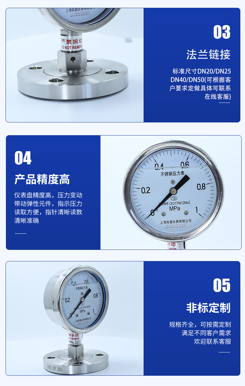 - What You Get: One Y-150BF-MF flanged diaphragm pressure gauge, with CE certification (OCr17Ni12Mo2 material), backed by a one-year warranty, guaranteeing quality and performance.
