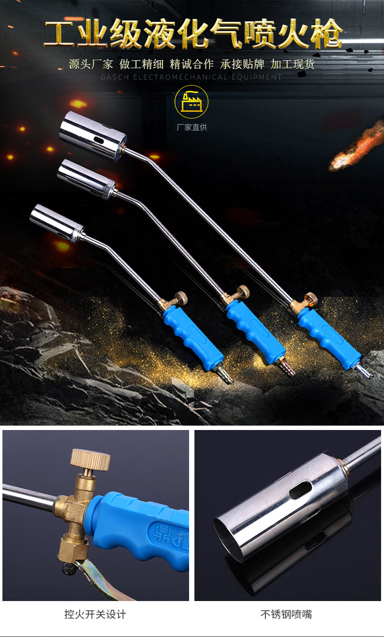 Stainless Steel Liquefied Gas Flame Gun (Single/Double Switch) for Industrial and Home Use, Stable Performance