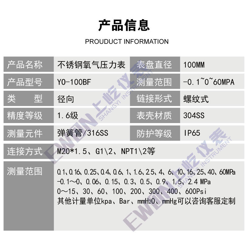 - Versatile Application: Specifically designed for high-purity oxygen pressure measurement, suitable for industrial and laboratory use.