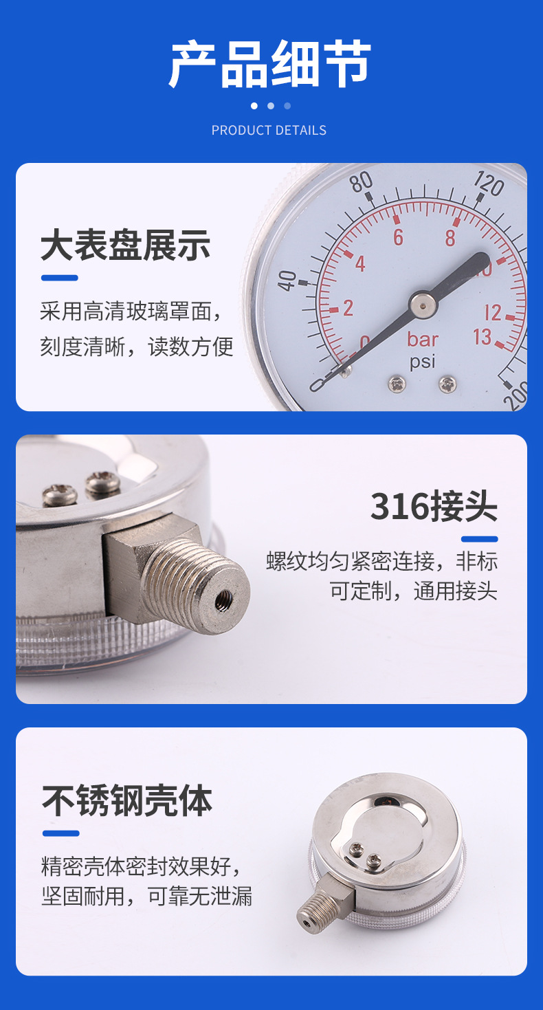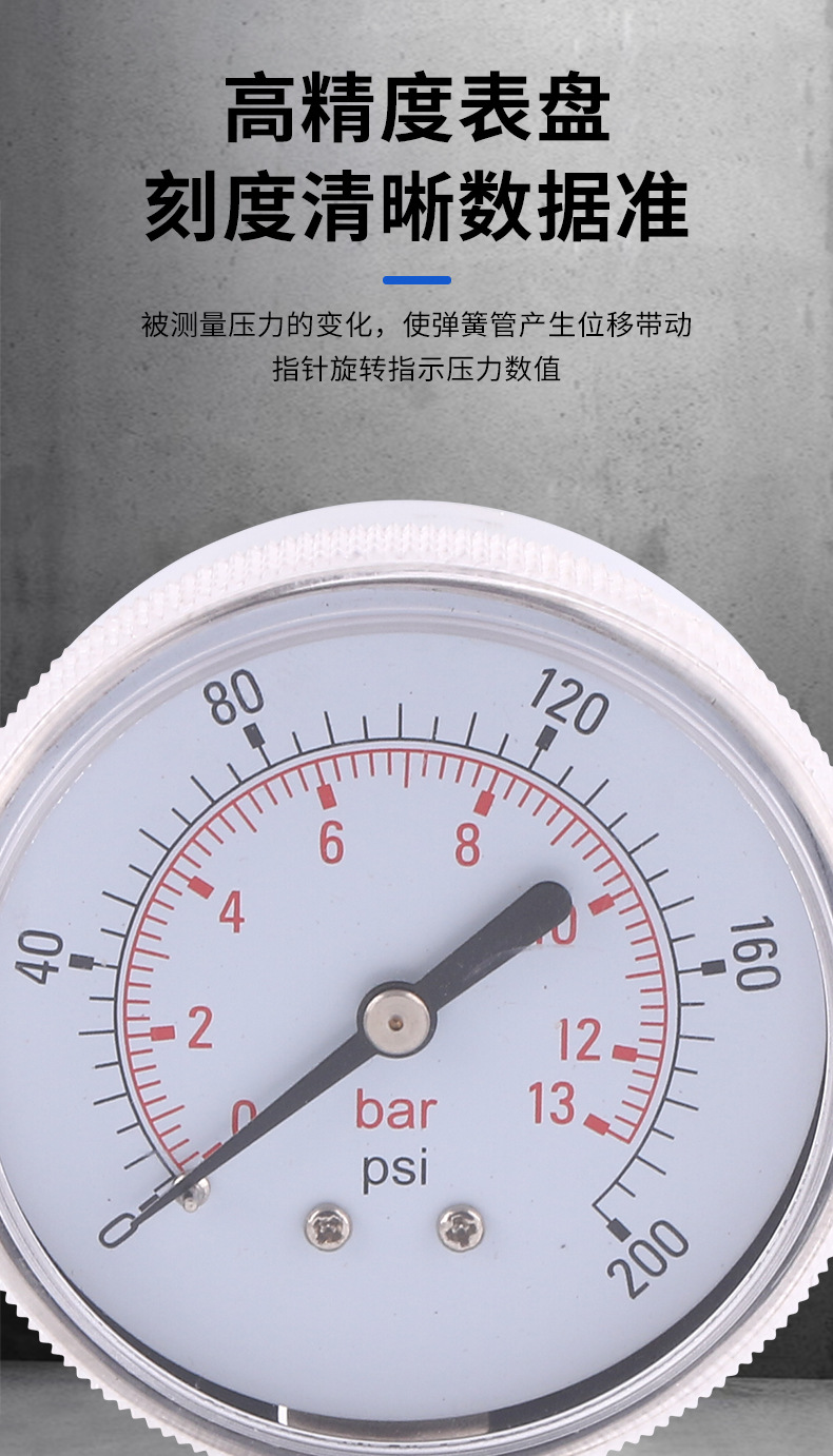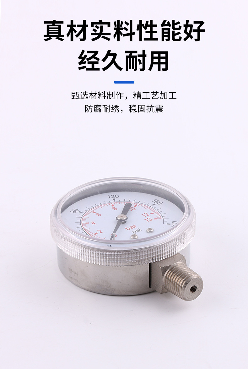 Stainless Steel Pressure Gauge 63mm Radial Mount All-Steel Y63D 0-13bar/psi for HVAC Systems