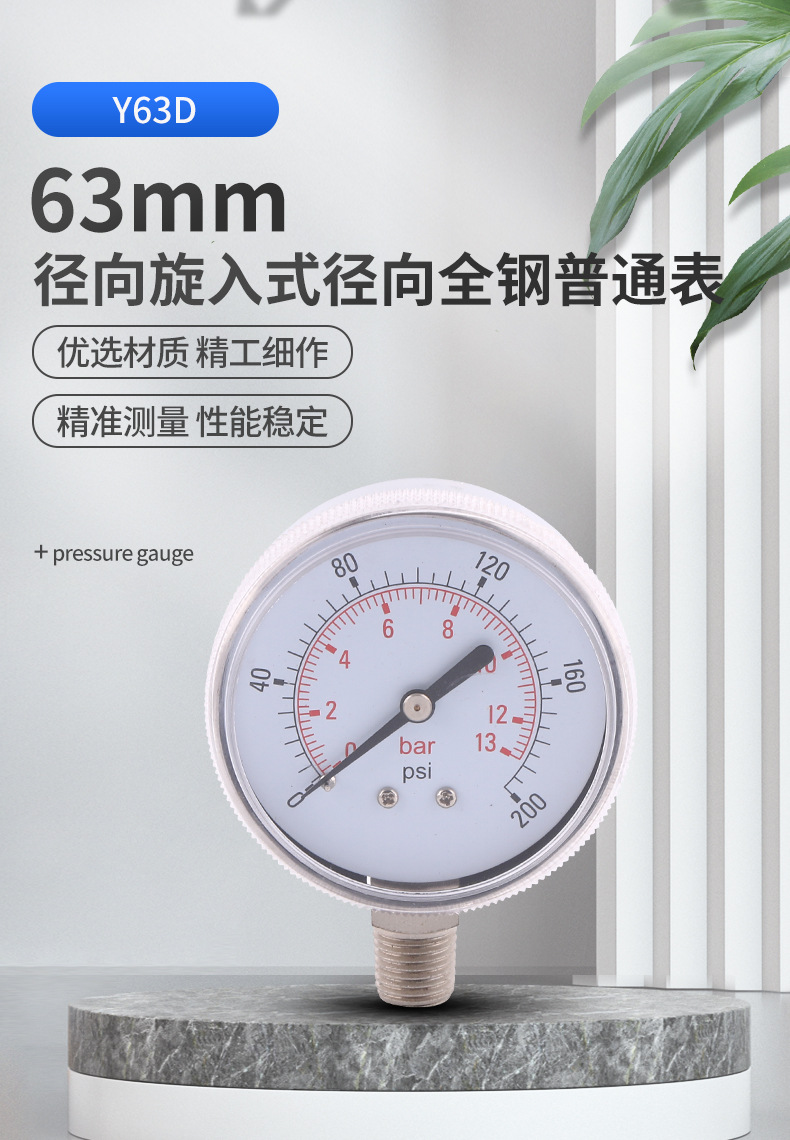 - Wide Compatibility: Universal pressure gauge, model Y63D, compatible with various general industrial and HVAC pressure measurement systems. Replaces standard 63mm radial type gauges for broad application.