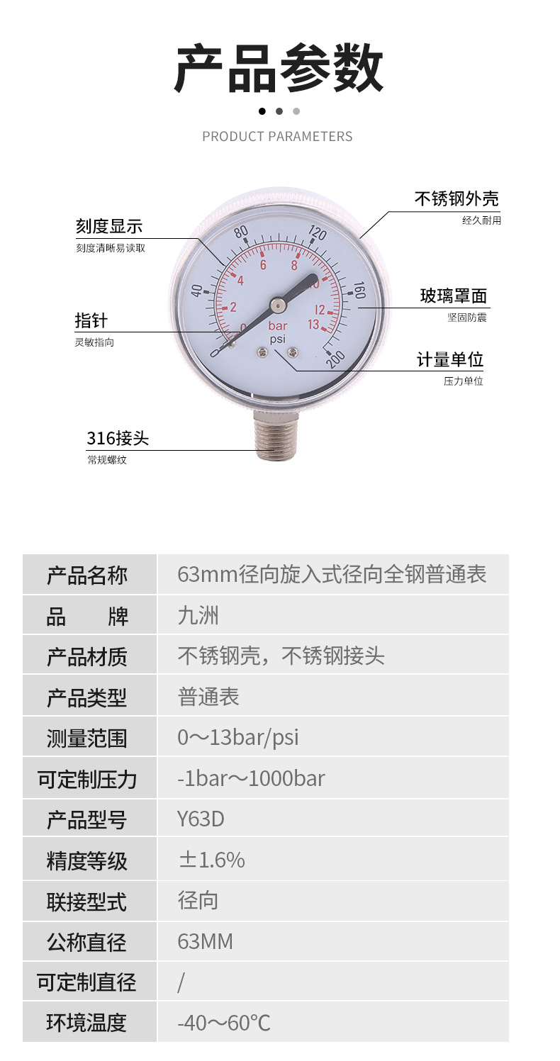 - What You Get: One high-quality stainless steel radial pressure gauge (Y63D). Ideal for industrial monitoring, HVAC, plumbing, and other applications requiring reliable pressure readings and easy replacement.