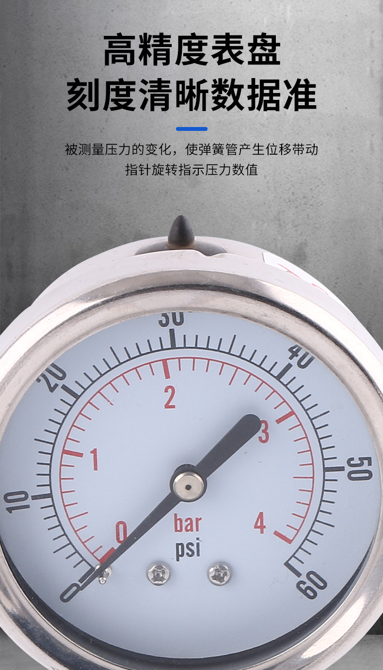 - Key Specs & Performance: Features a 63mm nominal diameter and a measurement range of 0-60 psi / 0-4 bar, offering precise pressure monitoring with an accuracy class rating of ±1.6%.