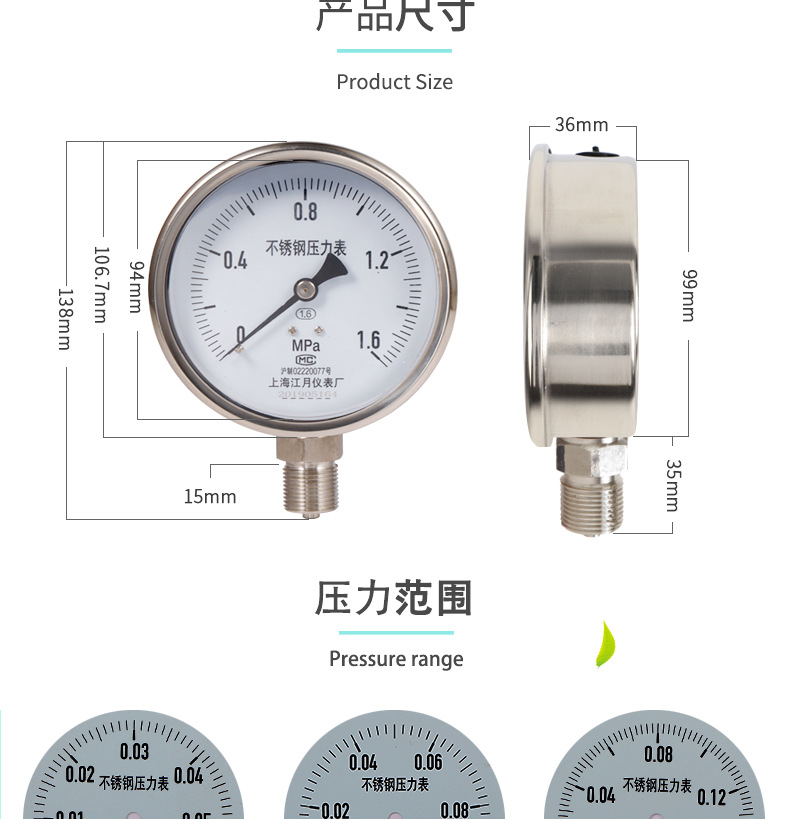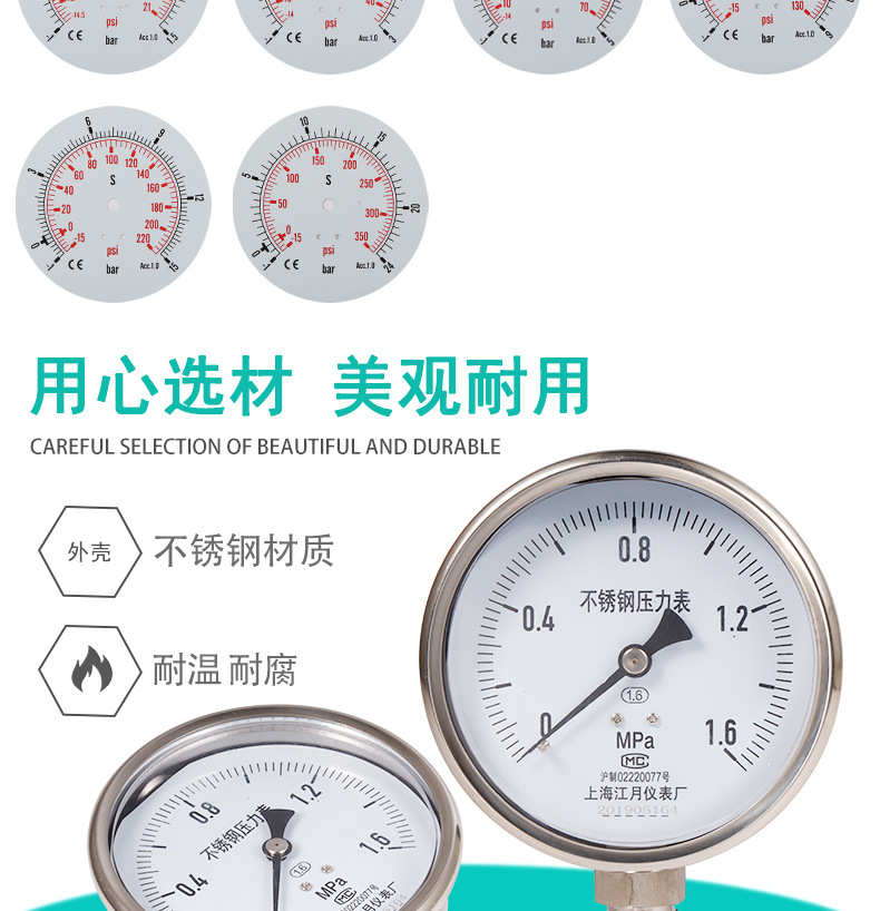 - What You Get: Includes one high-quality stainless steel pressure gauge, manufactured by Shanghai Jiangyue Instrument Factory, providing a reliable and safe solution for pressure monitoring.