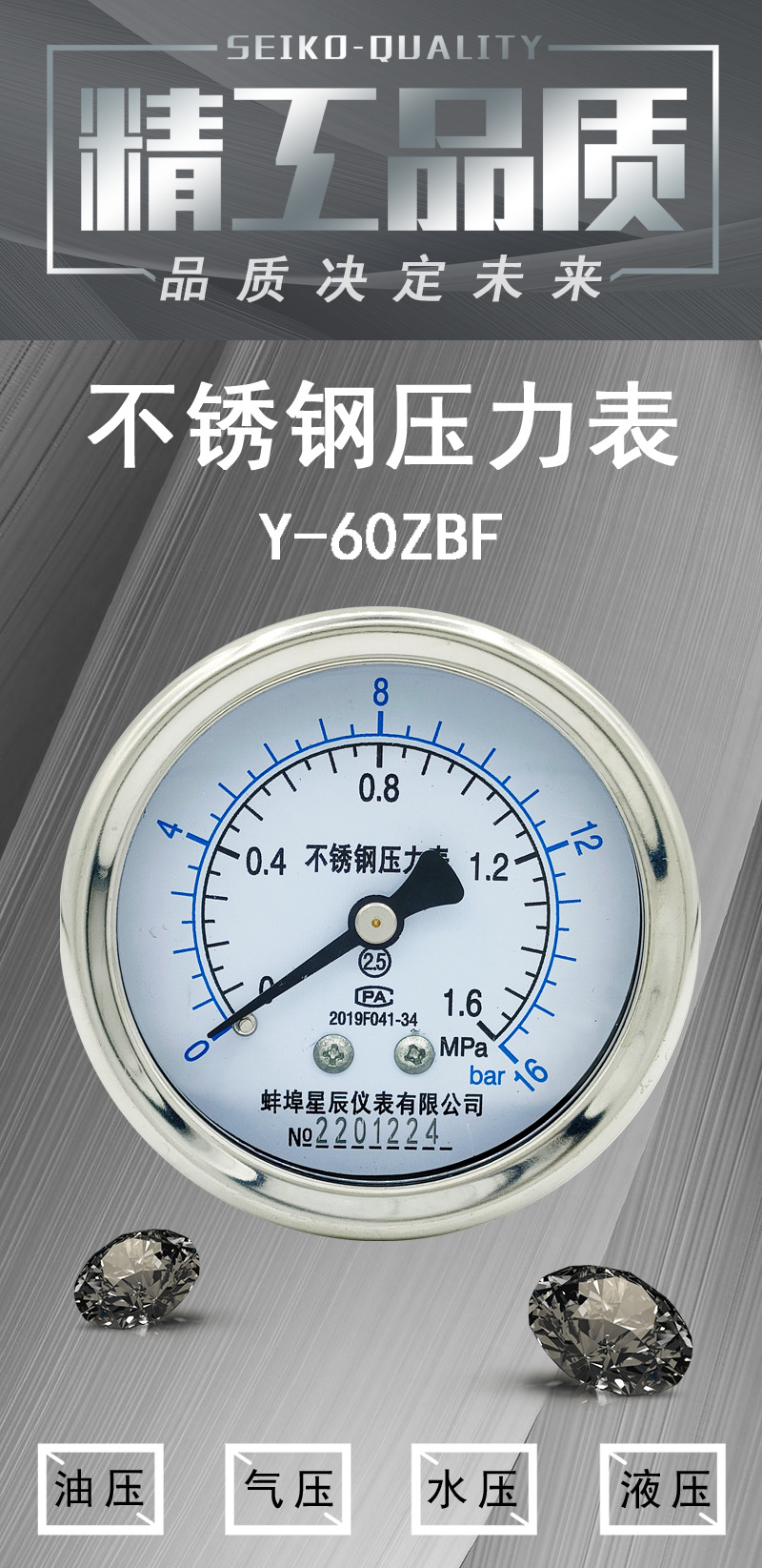 - Quality & Durability: Constructed from robust stainless steel, this Y-60ZBF series pressure gauge offers superior durability and corrosion resistance, suitable for demanding environments.