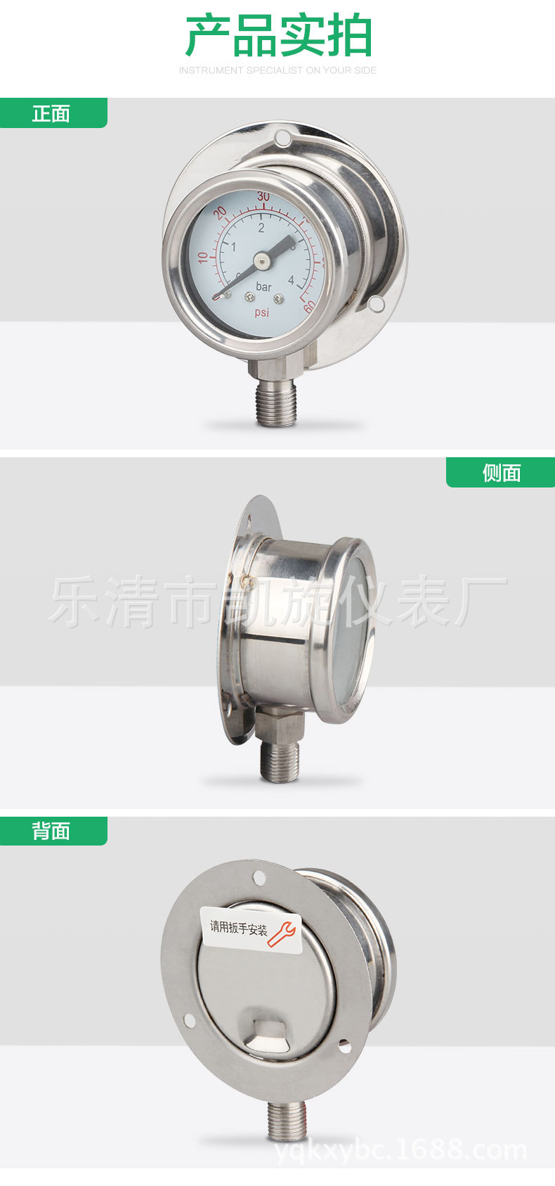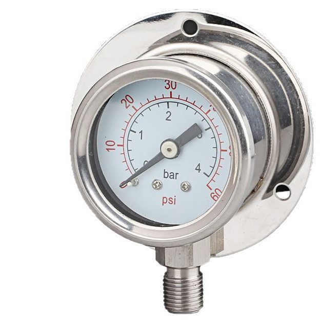 Stainless Steel Pressure Gauge Y40BFT Radial with Rear Edge Marine Pressure Gauge -0-40 bar/psi for Industrial Use