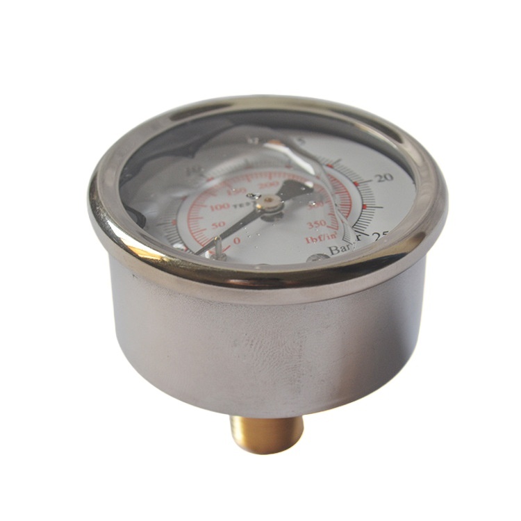Stainless Steel Pressure Gauge YBN50Z (0-25 Bar, 50mm Diameter, Axial 1/4PT Connection) for HVAC Systems