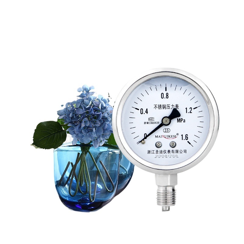 Hongqi Y-250BF/YTN-250BF All Stainless Steel Pressure Gauge, High Temperature Resistant, Acid-Alkali Corrosion Proof