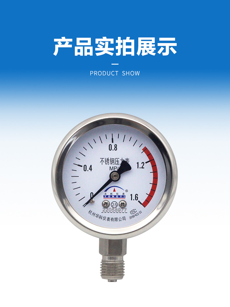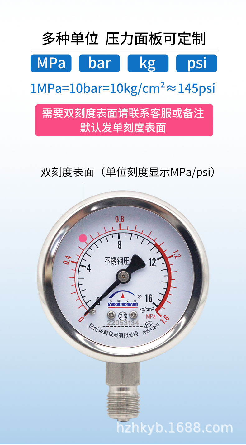 Stainless Steel Radial Pressure Gauge Y60BF (0-1.6MPa) for Water Hydraulic Oil Air Pressure Systems