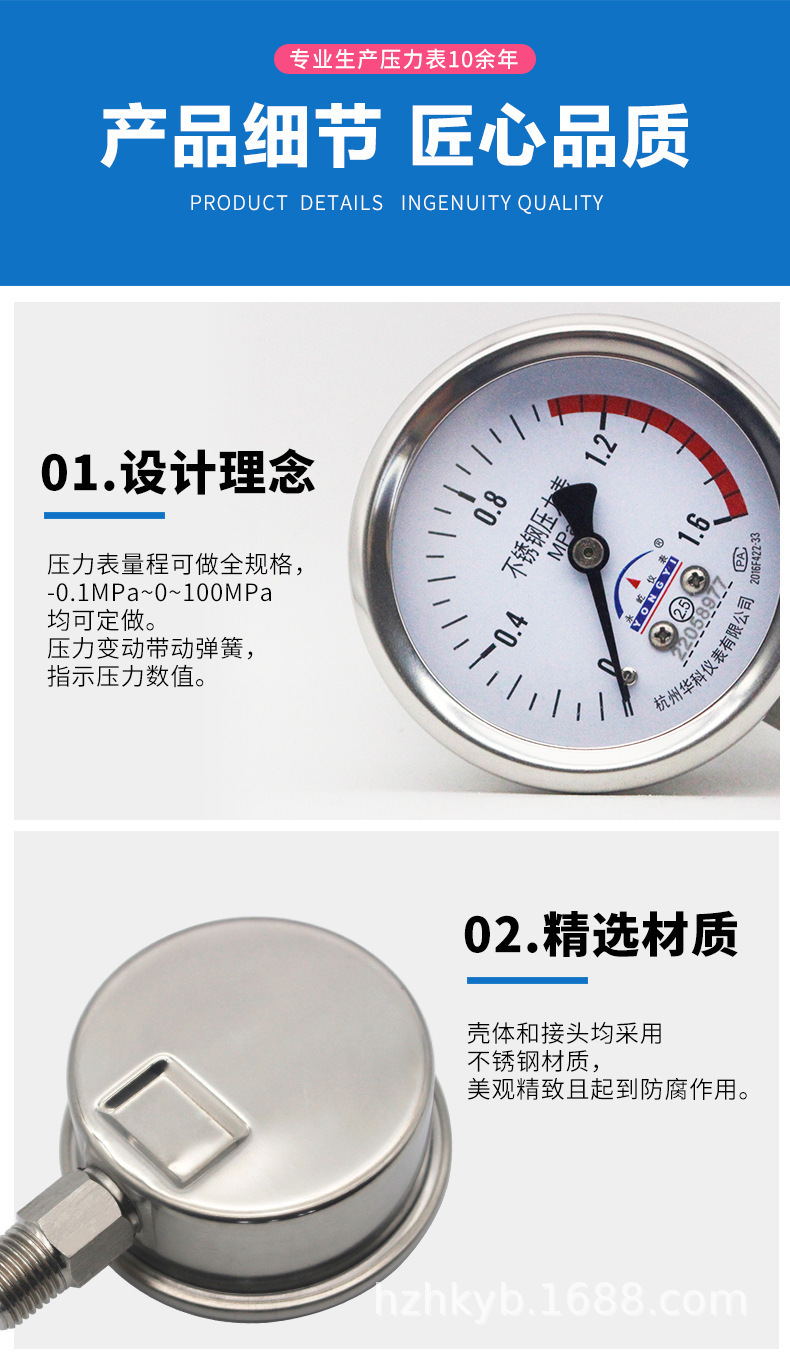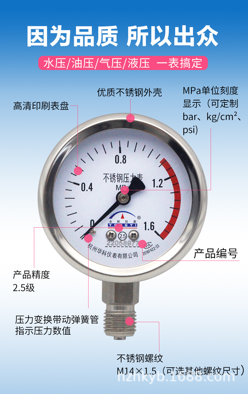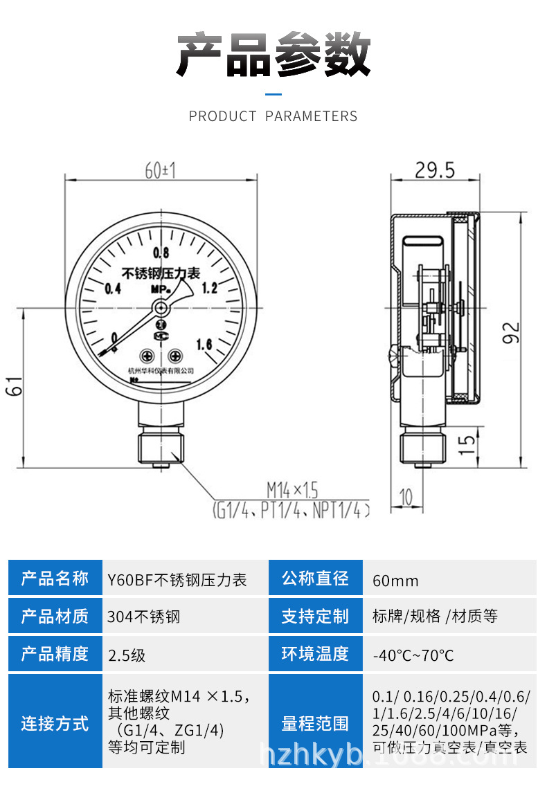 - Key Specs & Performance: Features a precise 0-1.6MPa measuring range with a 2.5 accuracy class, specifically designed with a Y60BF radial connection for accurate and reliable pressure readings.