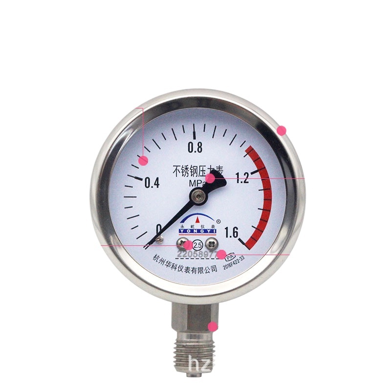 Hongqi Y-60 Pressure Gauge Water Pressure Vacuum Negative Pressure Meter for HVAC Firefighting Tire Pressure