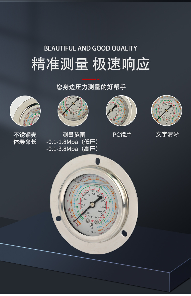 - Key Specs & Performance: Precision Class 1.6 gauge with a measurement range of 0-200 psi (0-1.6 MPa) and -30 to 70°C, providing accurate and stable readings for precise system monitoring.