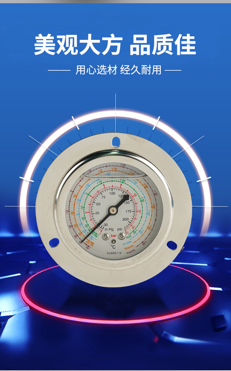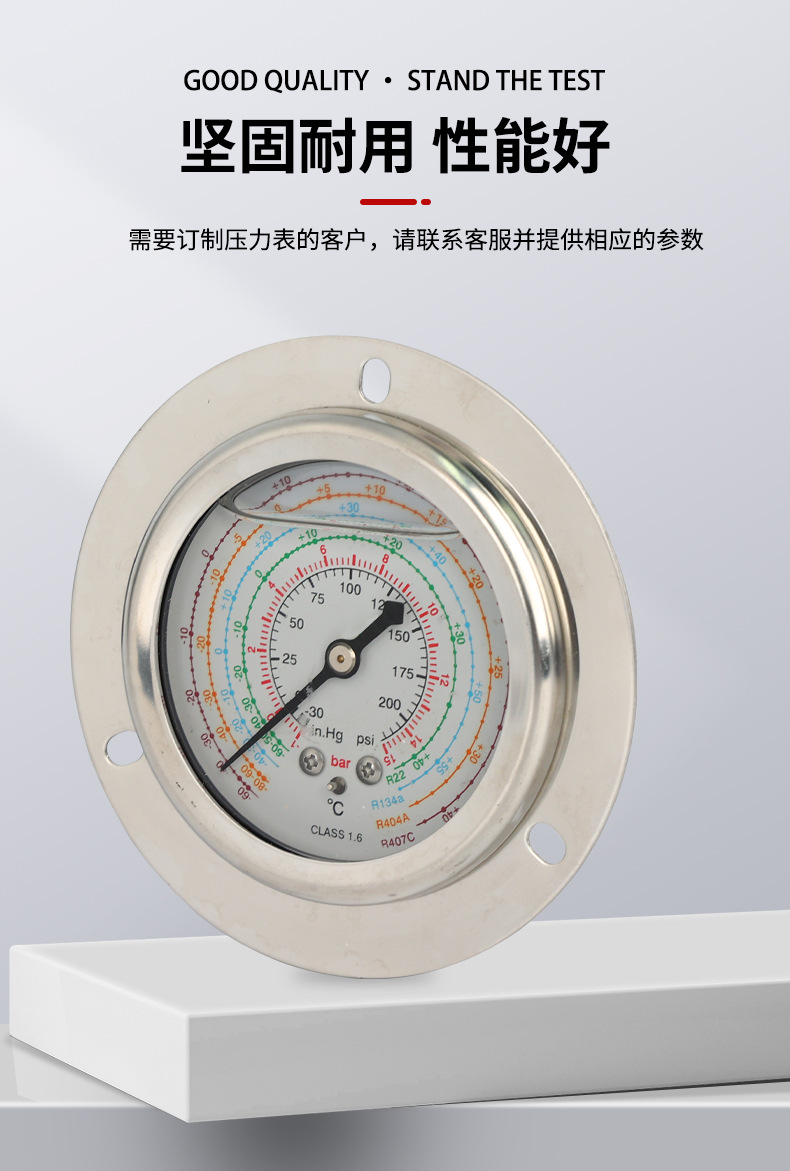 Refrigerant Pressure Gauge 50mm Dial 1.6 Accuracy Class R-134a R-410A R-22 R-404A compatible with HVAC systems
