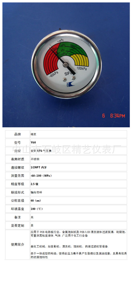- Key Specs & Performance: Precision engineered with a 60mm nominal diameter and a measurement range of -60 to 100 kPa, providing accurate SF6 gas pressure monitoring for optimal system operation.