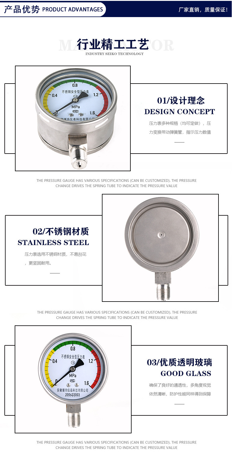 - Key Specs & Performance: Features a measuring range of 0-1.6 MPa and 1.6 accuracy class, ensuring highly precise and reliable pressure readings for critical operations.