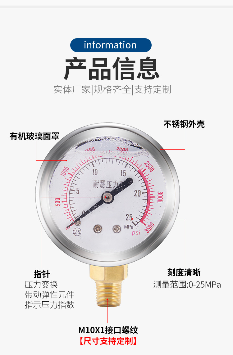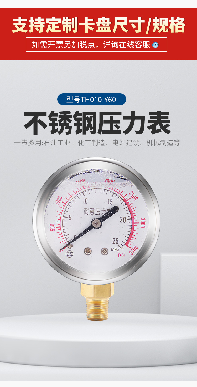 TONGHE Stainless Steel Pressure Gauge (0-25 MPa, Shock-Resistant) for Industrial & HVAC Systems