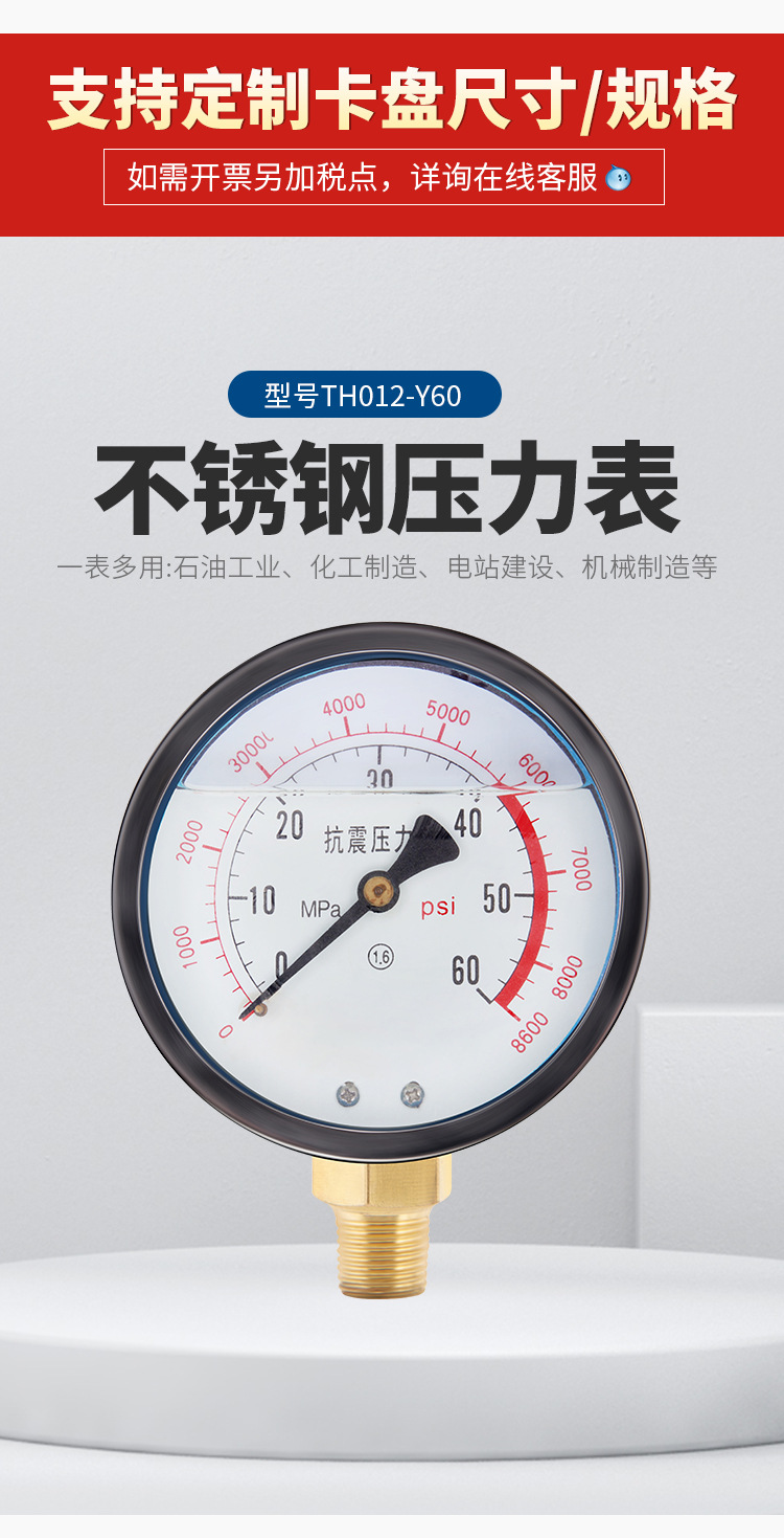 - What You Get: One TONGHE Y60 stainless steel pressure gauge. Factory direct supply with customization support, ensuring high quality and reliable measurement for your needs.