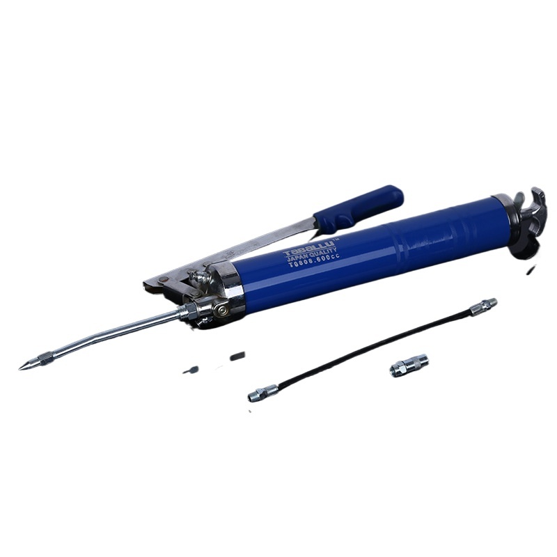 - What You Get: One Tajimaw 600cc blue lever-action grease gun, complete with an attached rigid extension and flexible hose for versatile use, guaranteeing smooth operation right out of the box.