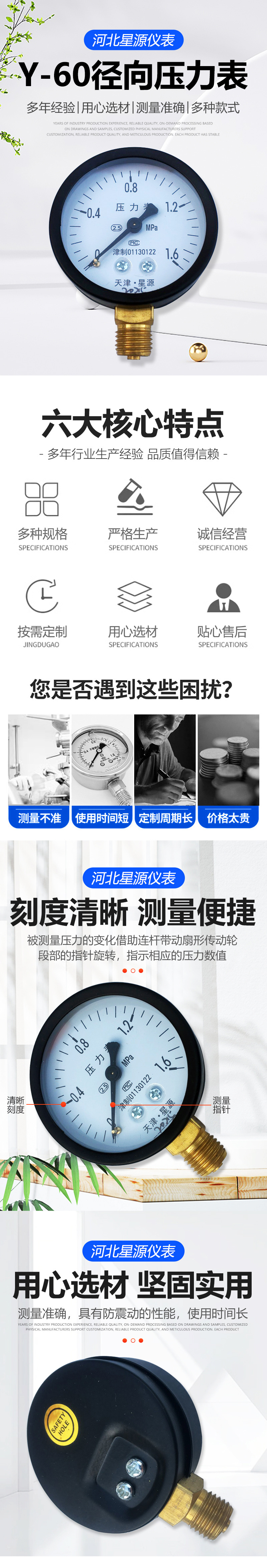 - Key Specs & Performance: Features a clear analog display with a 0-1.6 MPa measurement range (customizable options available). Provides accurate readings with a 2.5 accuracy rating, essential for precise pressure monitoring.