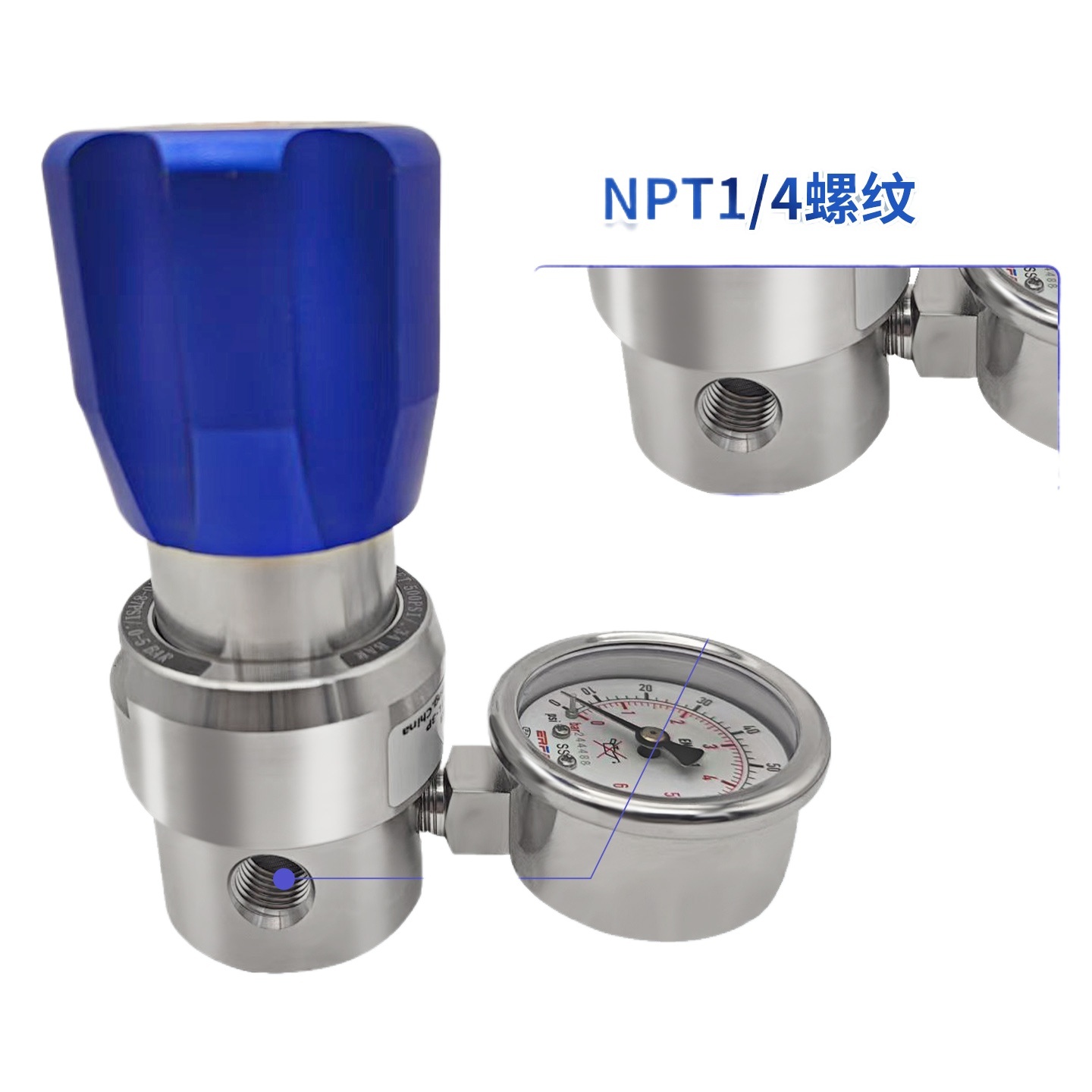 Two-Stage Pressure Regulator (0-2.5 MPa, 0-34 BAR, 316L Stainless Steel, Hastelloy Diaphragm) for O2, N2, H2, He, Air, Ar, CO2, C2H2 Gases