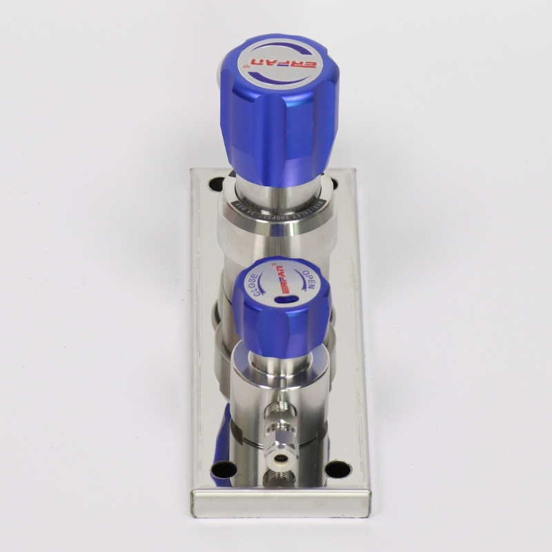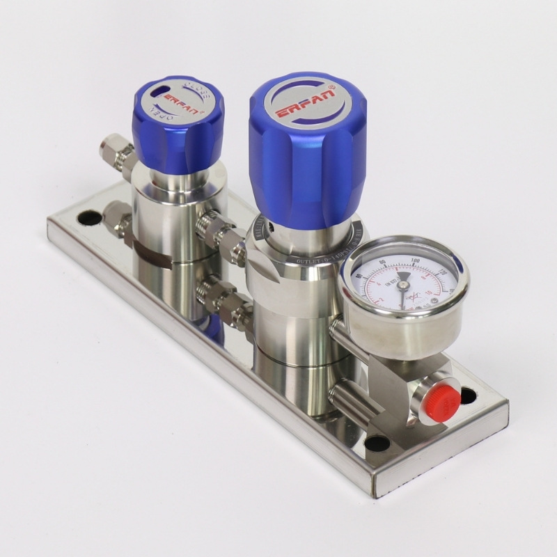 Two-Stage Terminal Pressure Reducing Regulator Valve with Gauge for Acid-Alkali Gas, 316L Stainless Steel 0-2.5MPa, Cv=0.08