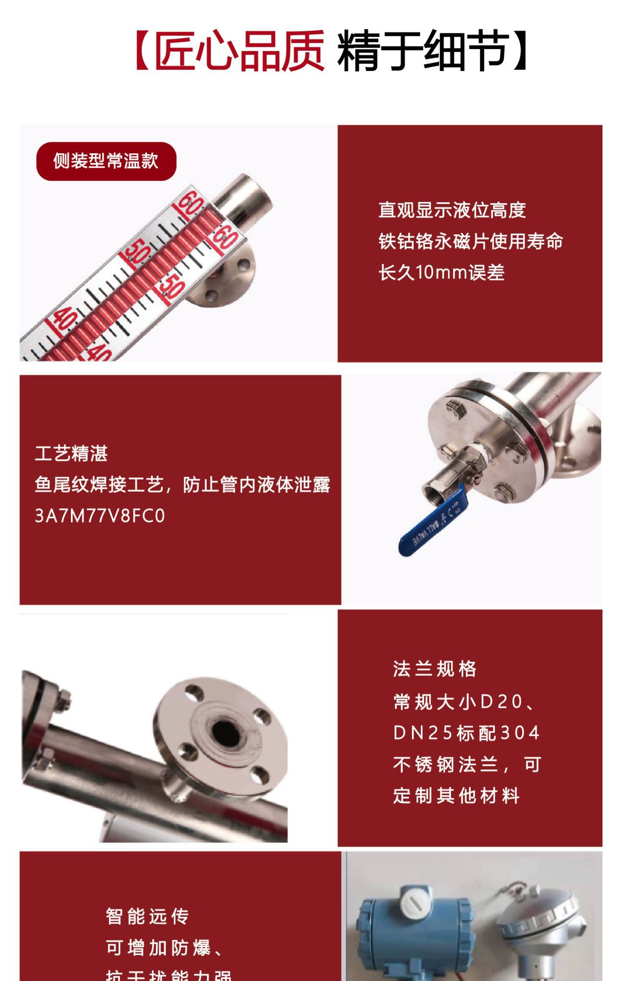 UHY Magnetic Level Gauge Liquid Water Level Meter Indicator with Remote Transmission Stainless Steel Liner Anti-Corrosion