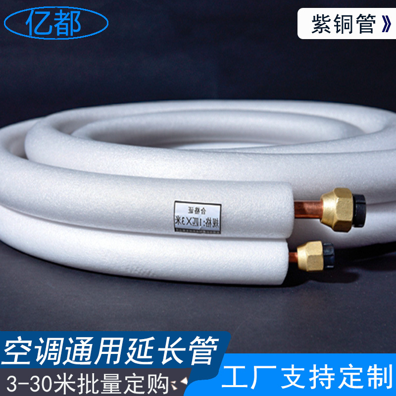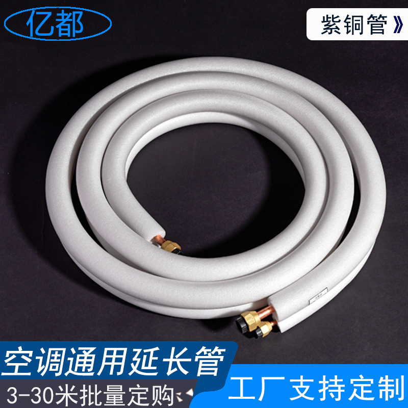 Pure Copper Air Conditioner Connecting Pipe (TP2 Purple Copper Tube, Flame Retardant Insulation Cotton, 1P-5P Universal) for All Major HVAC Brands