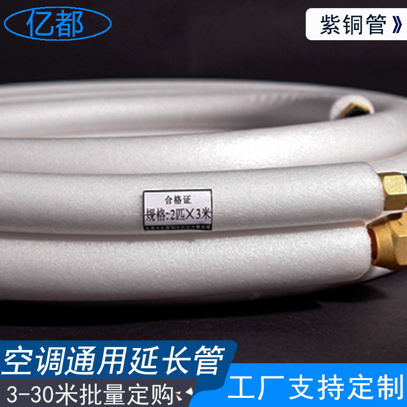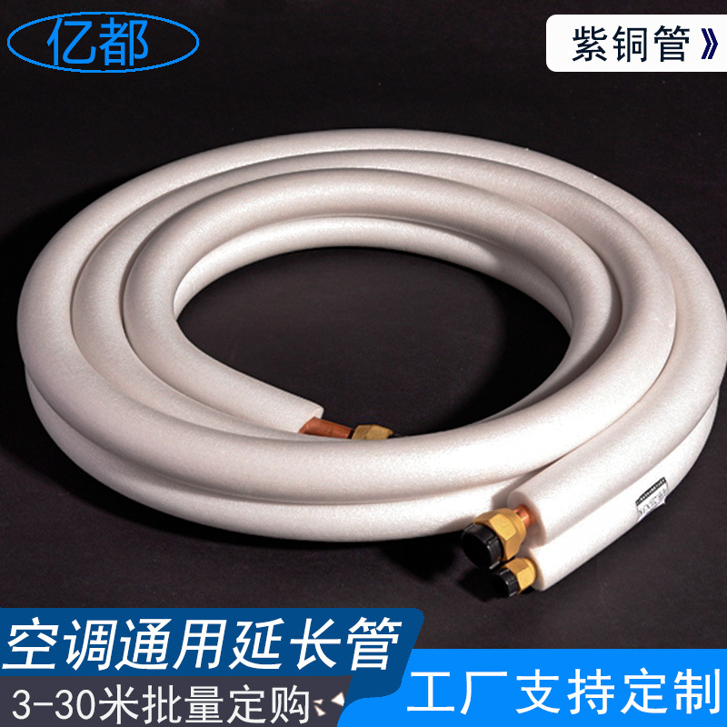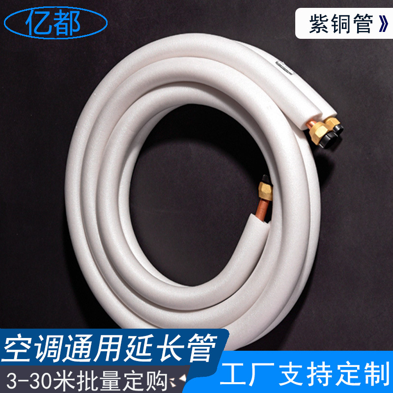 Pure Copper Air Conditioner Connecting Pipe (TP2 Purple Copper Tube, Flame Retardant Insulation Cotton, 1P-5P Universal) for All Major HVAC Brands