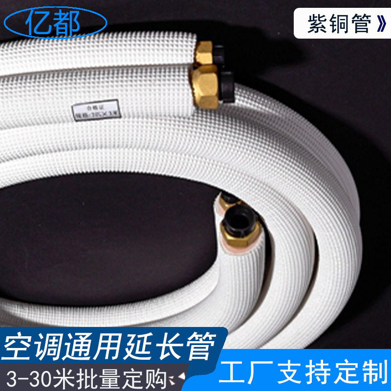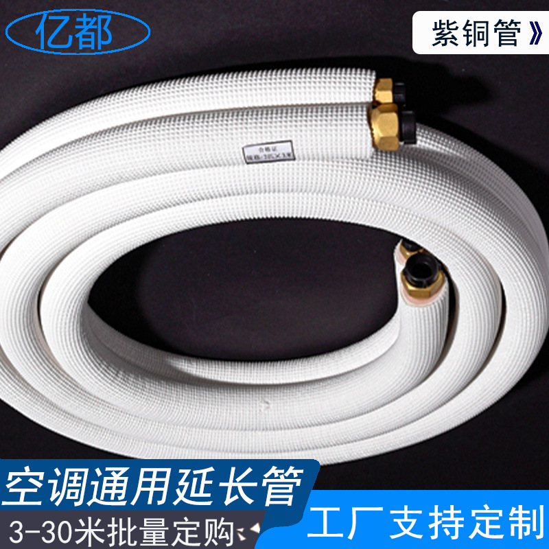 Universal Air Conditioner Copper Tube Extension Hose with Insulation 6.35*0.6+12.7*0.6, 3 meter, for 2HP AC Systems, Made of Pure Copper
