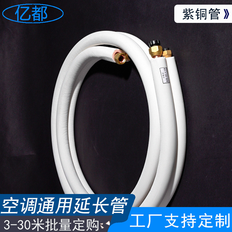 Pure Copper Air Conditioner Connecting Pipe (TP2 Purple Copper Tube, Flame Retardant Insulation Cotton, 1P-5P Universal) for All Major HVAC Brands