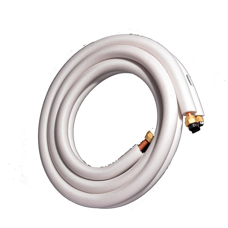 - Durable & Insulated Design: The robust copper piping is encased in a thick, white insulation layer that protects against environmental elements, prevents condensation, and maximizes energy efficiency by minimizing heat loss or gain.