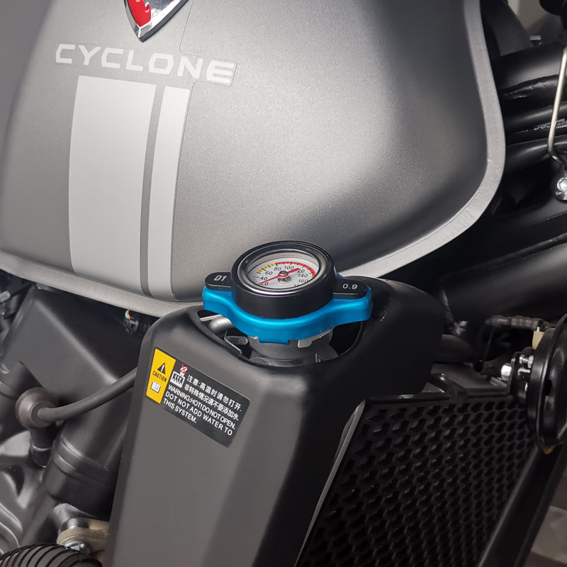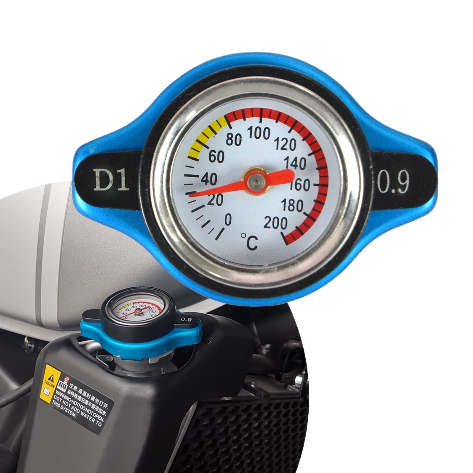 Universal Radiator Cap with Temperature Gauge (0-200°C) and Pressure Gauge (1.1 Bar) for Motorcycle & ATV Cooling System, Compatible with Benelli, CFMOTO, Honda, Yamaha