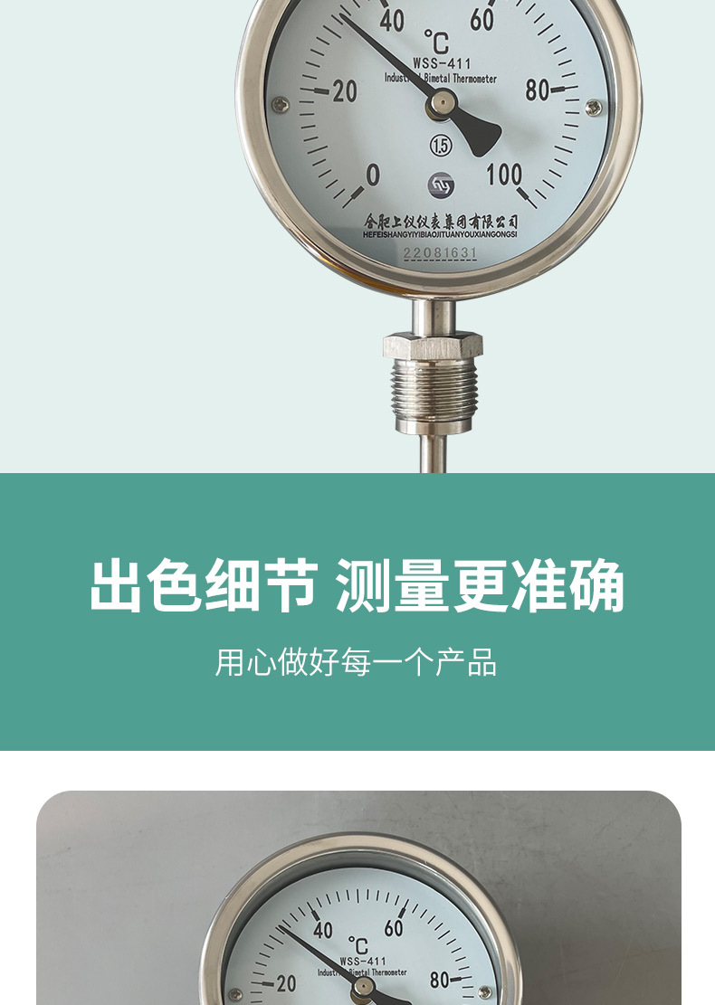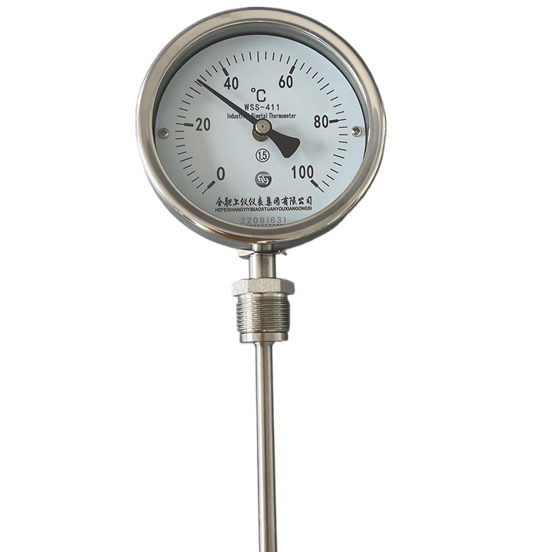 Upper Instrument Bimetal Thermometer WSSF-411 Axial Bimetallic Temperature Gauge -20 to 100°C for Industrial Pipe Systems
