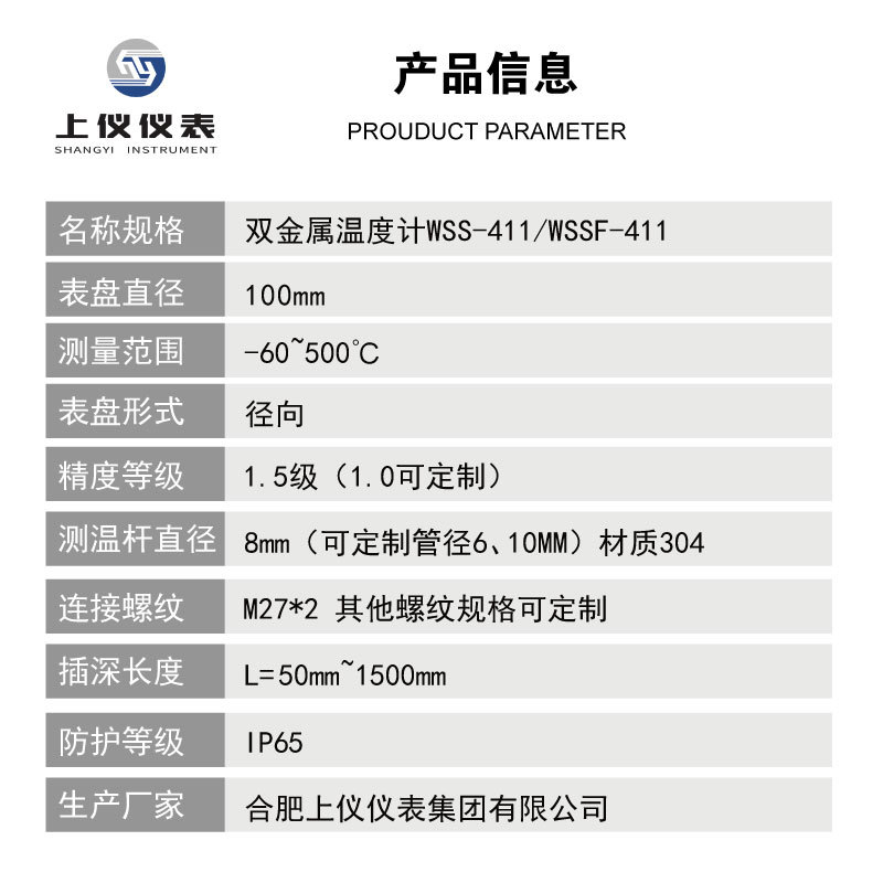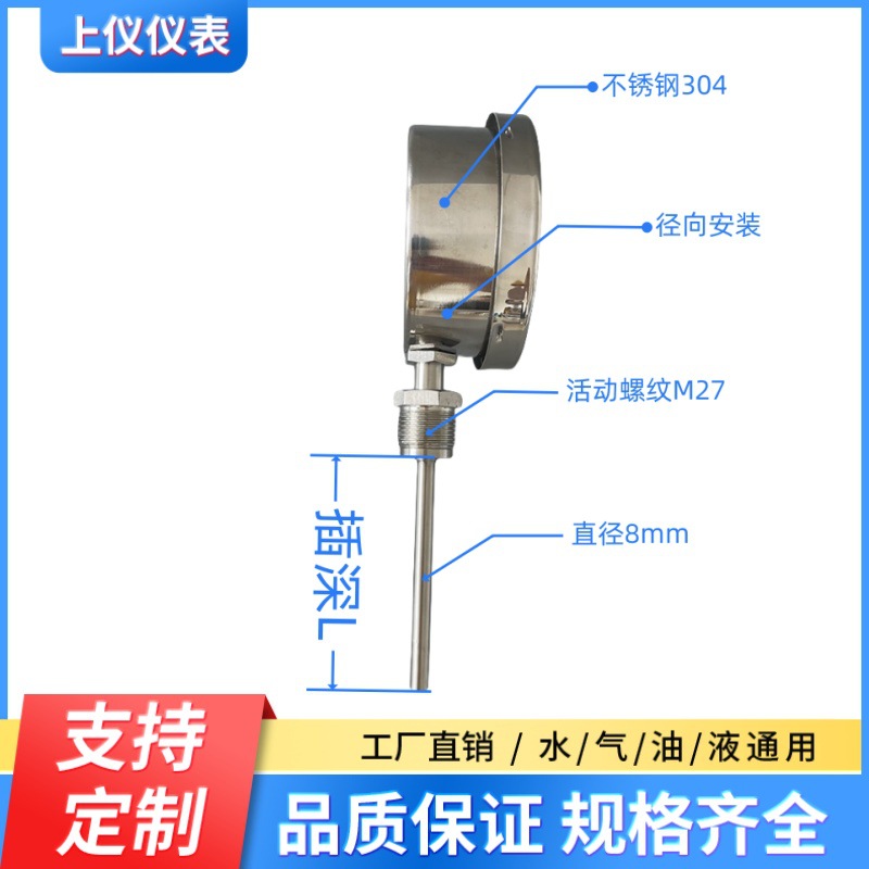 Upper Instrument WSS-411 Industrial Bimetal Thermometer (0-100℃) for HVAC Systems