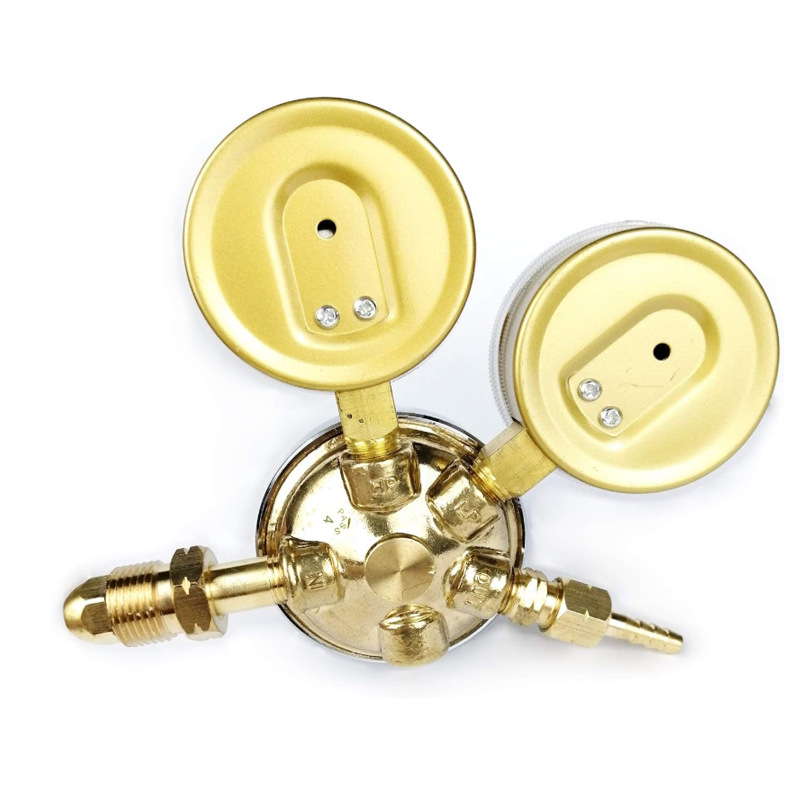 Full Brass Dual Flow Argon & CO2 Gas Regulator CGA580 for TIG Welder with Double Output Flowmeters