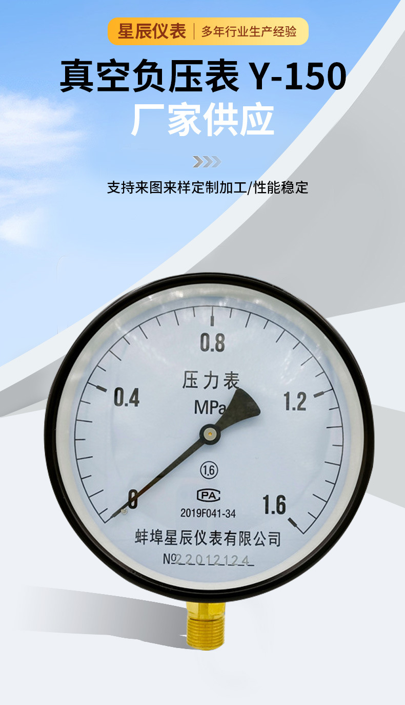 Vacuum Pressure Gauge Y-150 (0-1.6MPa) for Air, Water, Oil Systems, Replaces Xingchen Y-150-1.6MPa