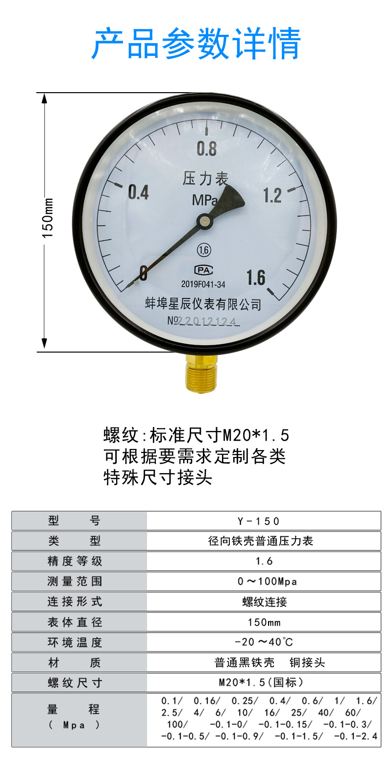 - Key Specs & Performance: Measures pressure within the 0 to 1.6 MPa range with an accuracy of 1.6, ensuring precise readings for critical operations.
