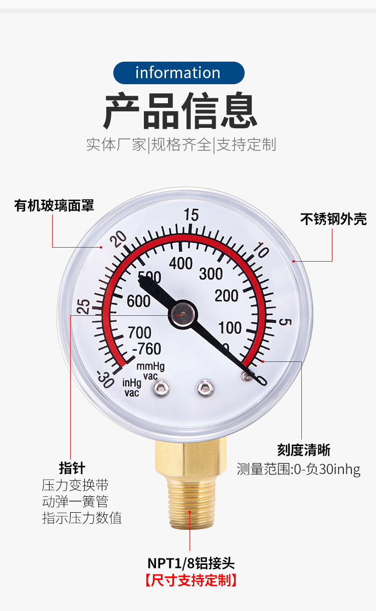 - What You Get: Includes one high-quality vacuum pressure gauge with clear markings, ensuring precise monitoring and offering a reliable solution for your vacuum measurement needs.