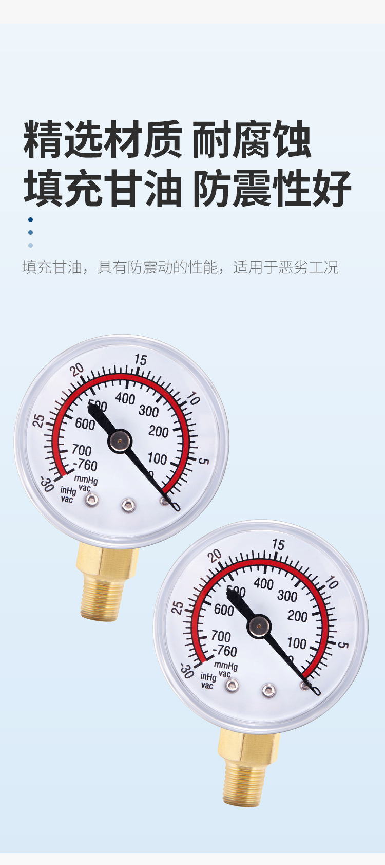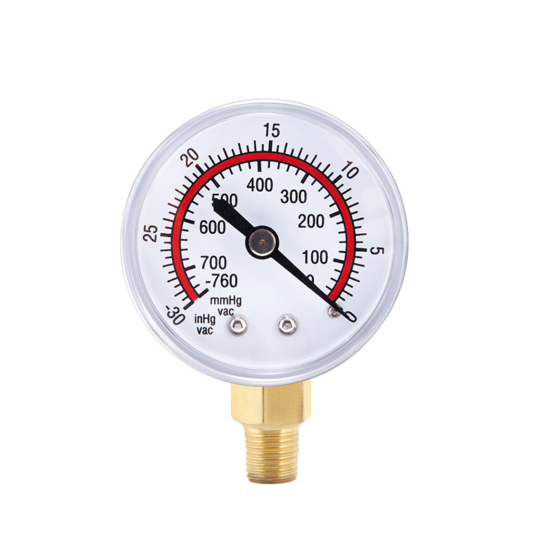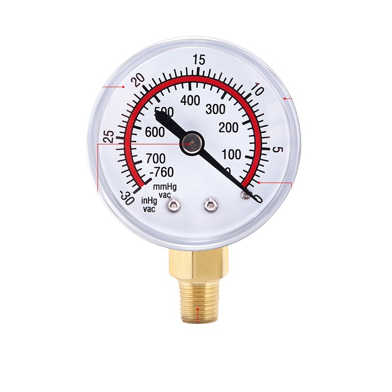 Vacuum Pressure Gauge for HVAC Refrigeration & AC Systems, 0-30 inHg / 0-760 mmHg, Brass Connector