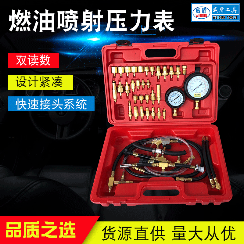 WEIDUN Fuel Injection Pressure Tester Kit (0-150 PSI, Dual Dial) for Automotive Systems, TU-443B