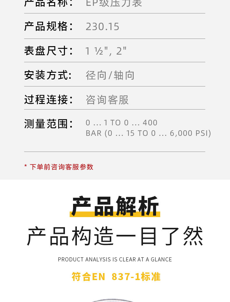 - What You Get: One WIKA 230.15 Series EP Grade Pressure Gauge, offering reliable pressure monitoring and ensuring system safety and efficiency.