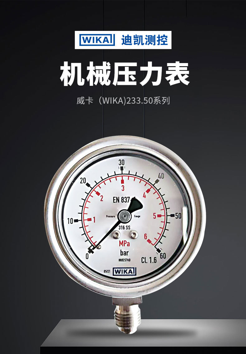 WIKA 233.50 Series Mechanical Pressure Gauge (0-100 MPa, EN 837-1, 316L Stainless Steel) for Industrial HVAC Systems