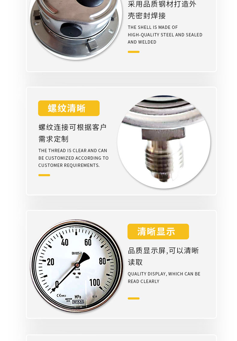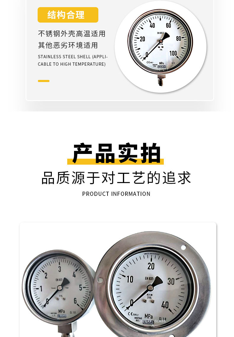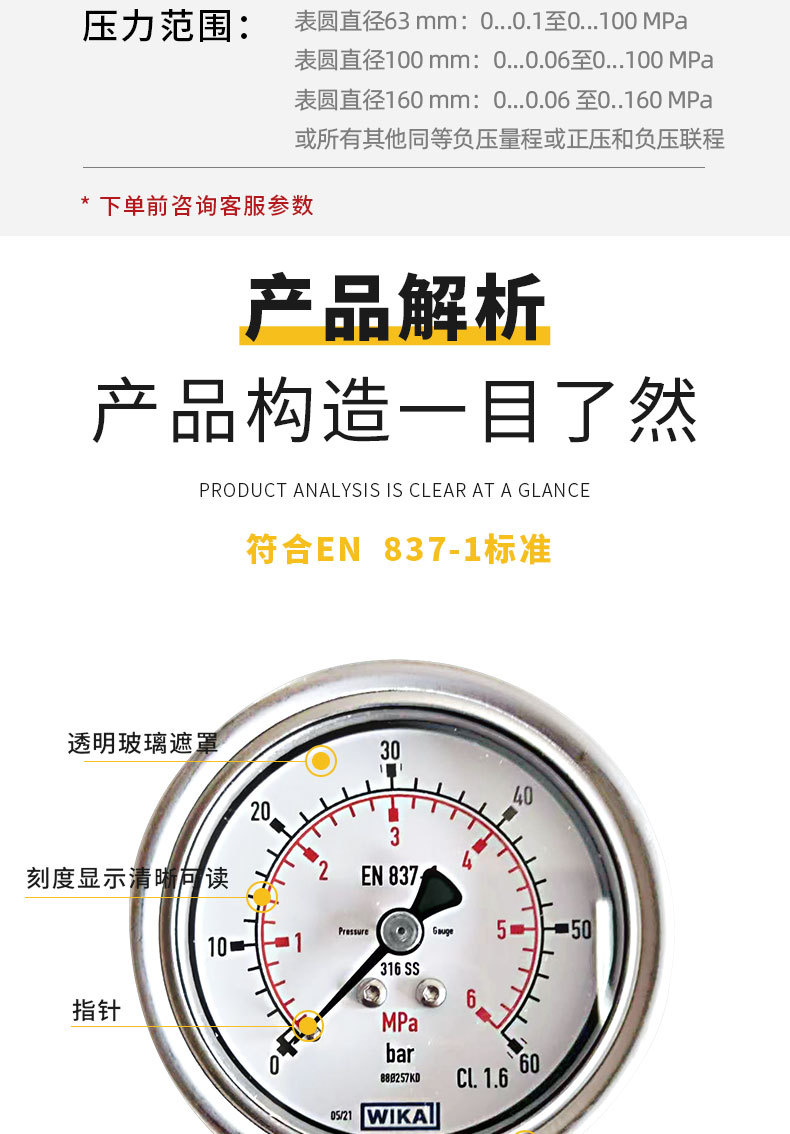 - Key Specs & Performance: Features a precise 0-100 MPa measuring range and conforms to EN 837-1 standard with CL 1.0 accuracy, providing highly reliable and consistent pressure monitoring.