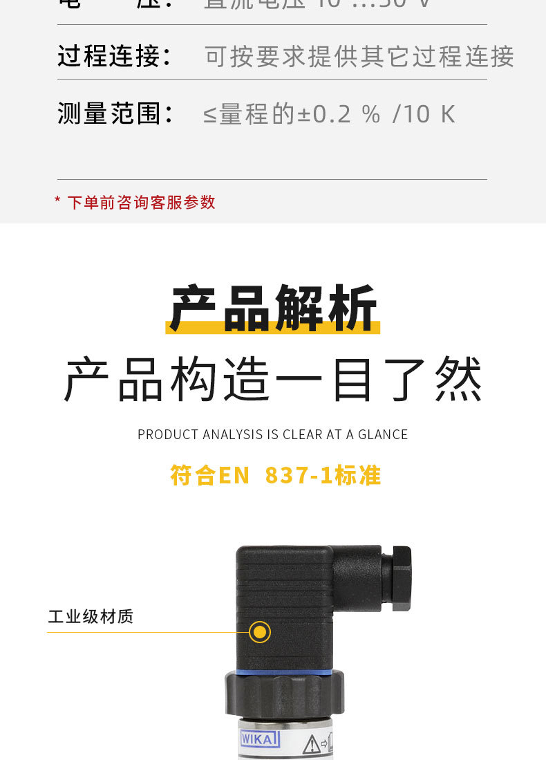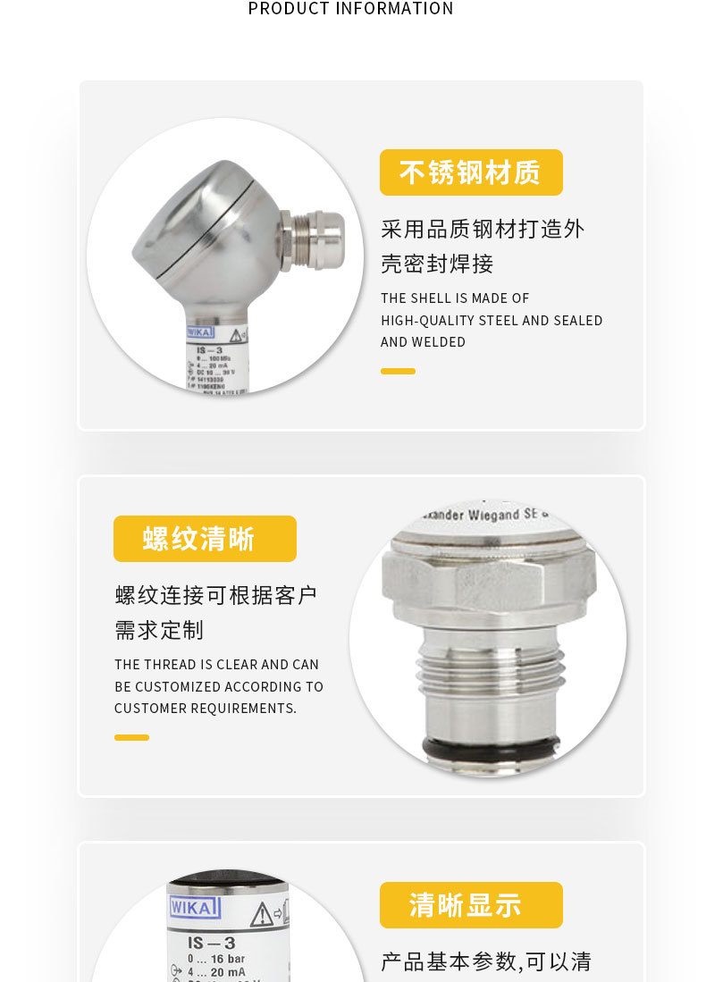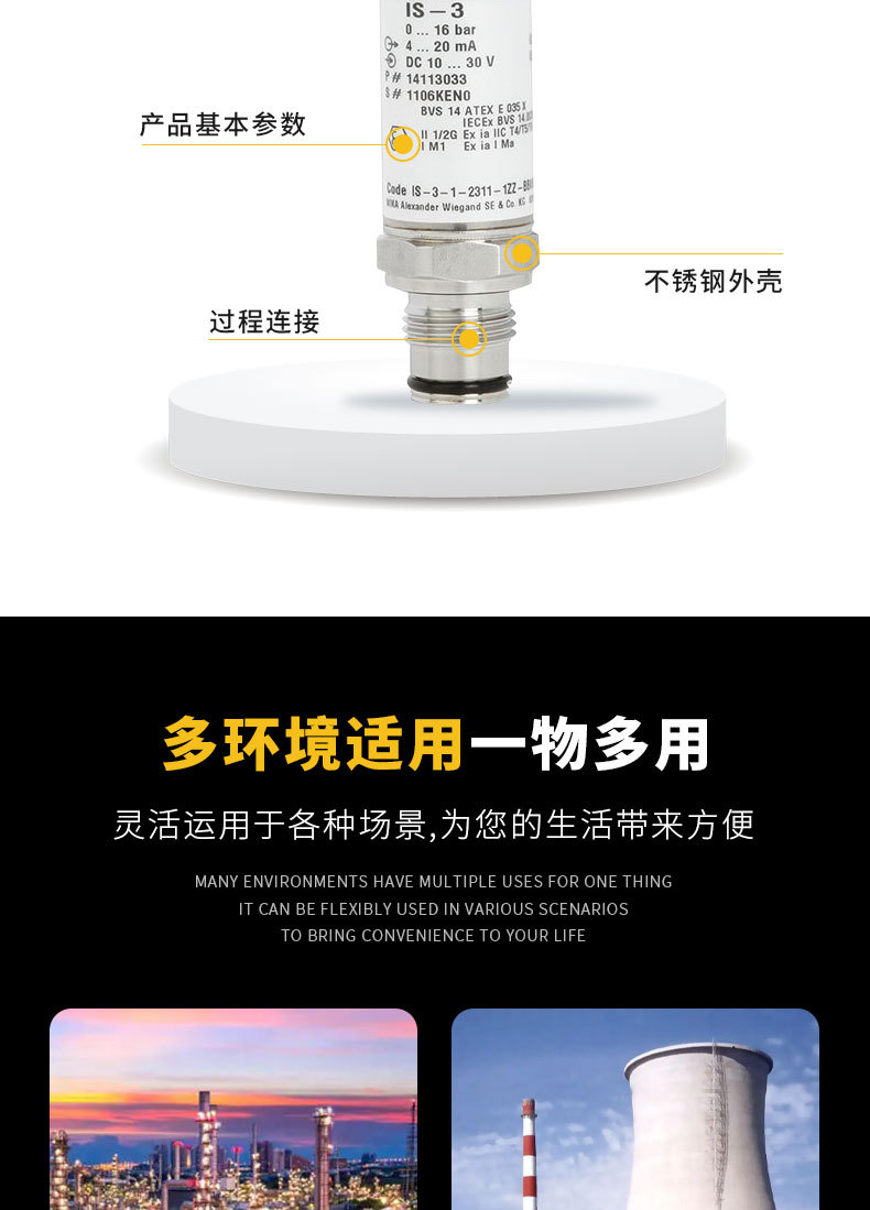 - Wide Compatibility: WIKA IS-3 series pressure transmitter, suitable for various industrial applications requiring precise pressure measurement.