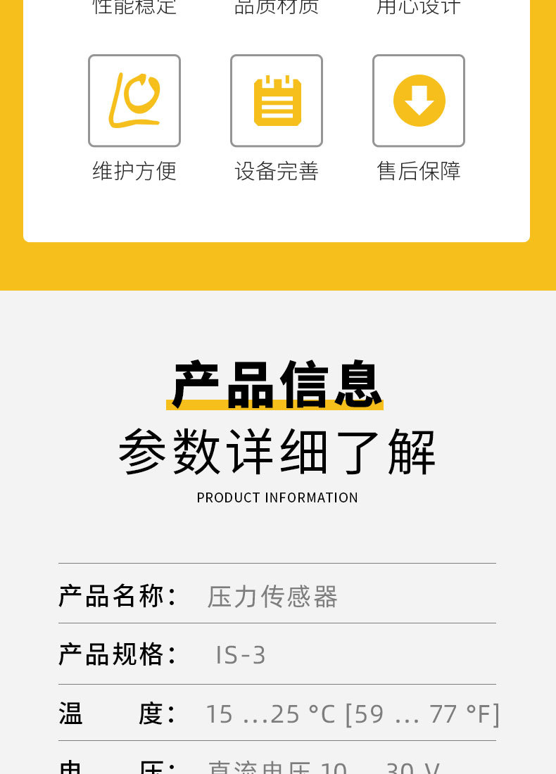 - Key Specs & Performance: Features 4-20mA output, wide pressure range from 0.4 to 400 MPa, and operates on 10-36V DC, providing accurate and stable readings.
